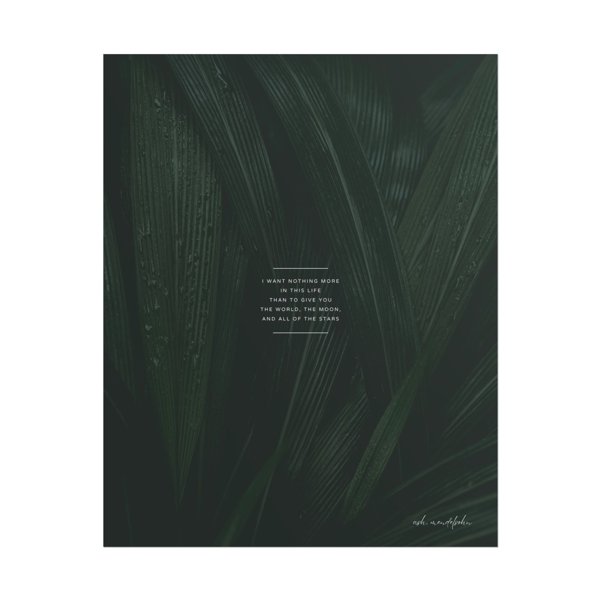 Some feelings don’t need many words, they just pour out of you like a vow. This matte rolled poetry print is for the moments when love feels infinite. A moody forest design sets the tone for this soft yet powerful piece, echoing the ache to give someone everything you have, and everything you wish you could reach.